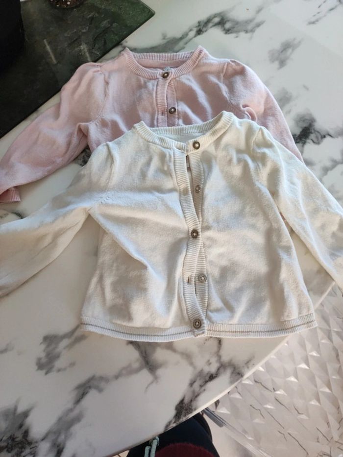 Lot 2 gilets rose et beige avec liseré doré taille 6 mois