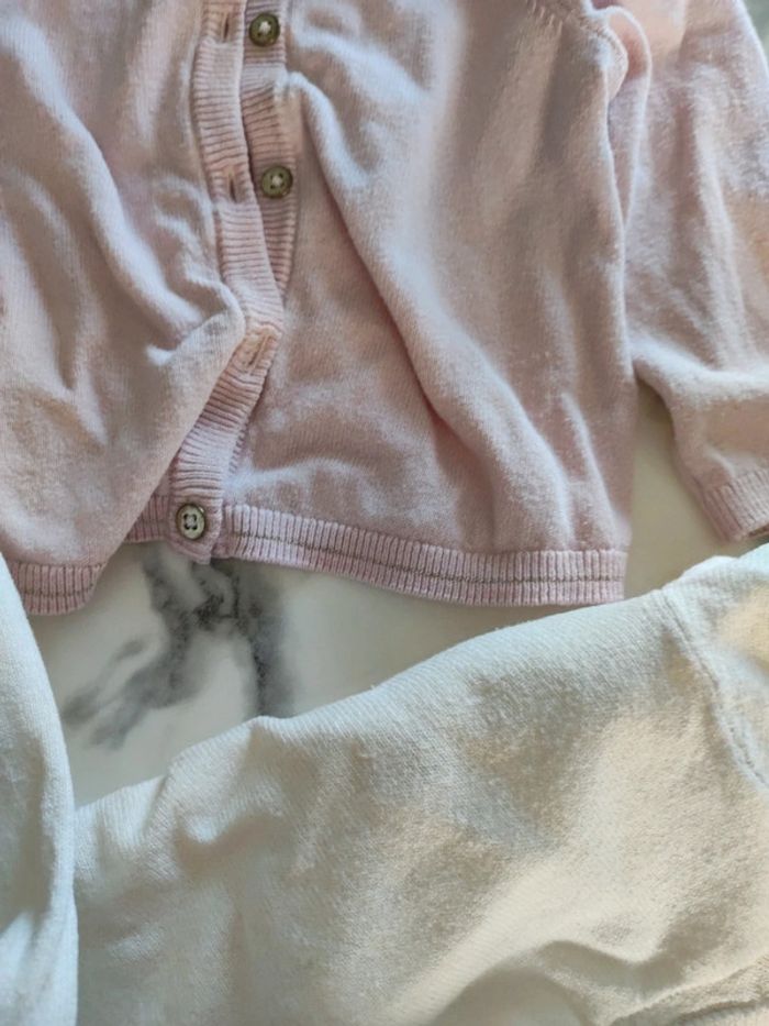 Lot 2 gilets rose et beige avec liseré doré taille 6 mois - photo numéro 5