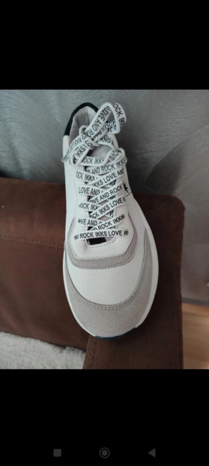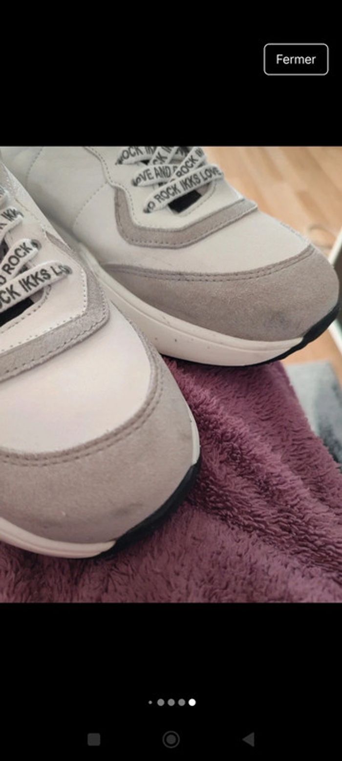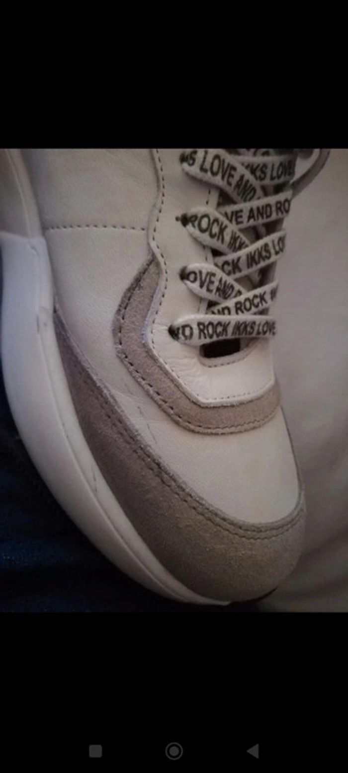 Basket blanche et grise bout en feutrine Légère trace noir voir dernières photos Lacets love and rock Ikks Ikks taille 38