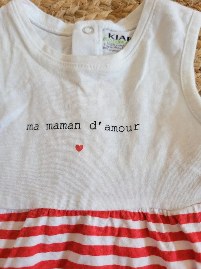 Robe à rayures de la marque Kiabi Taille 6 mois Coton bio Avec inscriptions : ma maman d'amour