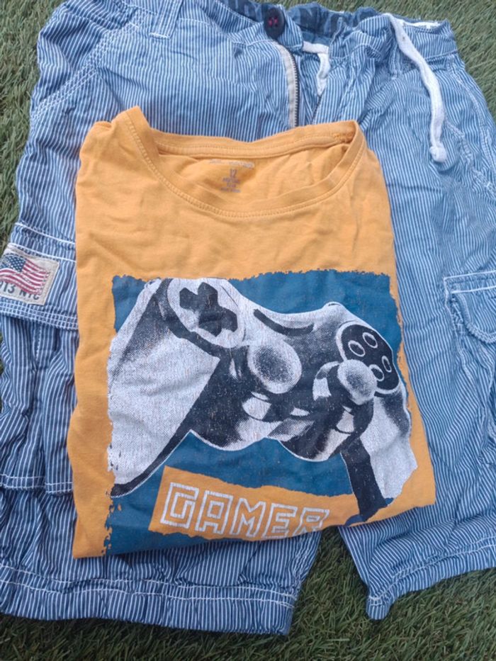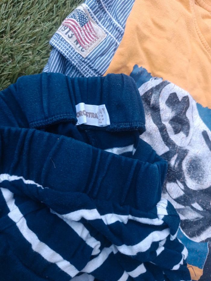 Profitez de 50% de réduction sur mon dressing 1 pantalon pyjama rayures bleu blanc 1 short Schott Bros. 1 t-shirt manches longues orchestra orange #lotvetementsenfants #12ansgarçon #orchestra #schott #tresbonetat