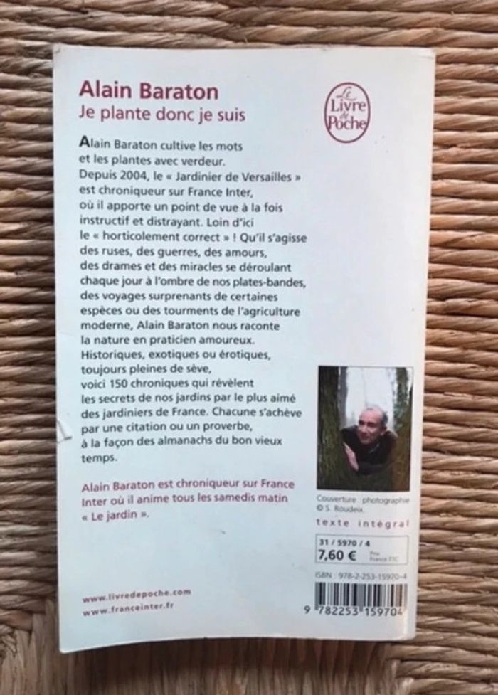 Livre en bon état (BP1) Alain Baraton Je plante donc je suis ⚠️📦 envoi mondial relais relais colis chronopost ou colissimo 📦⚠️ #bouquinaix #baratonbouquinaix réduction et frais de port groupés des l’achat de deux articles. #jeplantedoncjesuis #alainbaraton