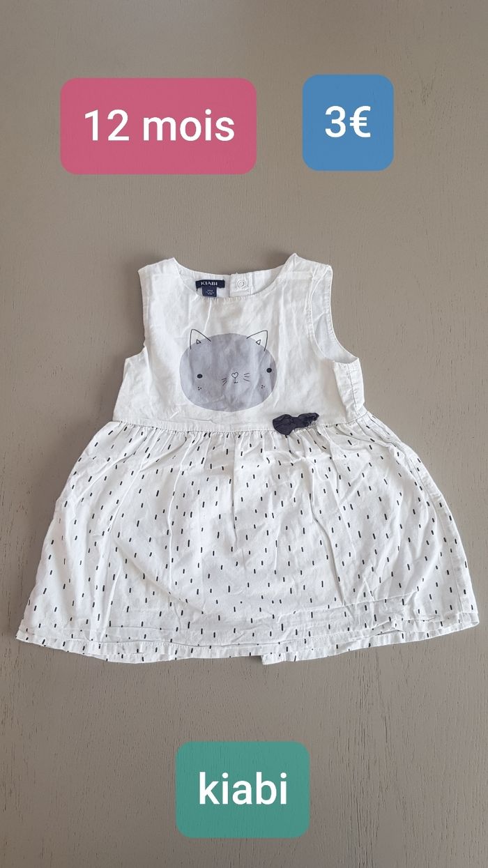 Vends jolie robe kiabi 12 mois. Attention tissus jaunis à l'encolure