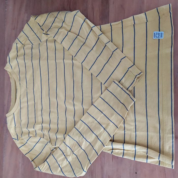 Manches longues Jaune moutarde rayé bleu marine Kiabi 12 ans