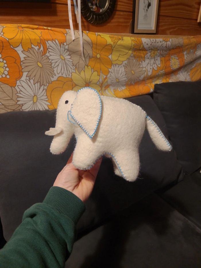 2 peluches en pure laine Le mouton est suédois et l'éléphant est une marque de jouet en laine connue dont j'ai oublié le nom Très bon état mais un fil se tire sur l'éléphant. Laine mérinos manymonths Disana Cosilana Dilling wool