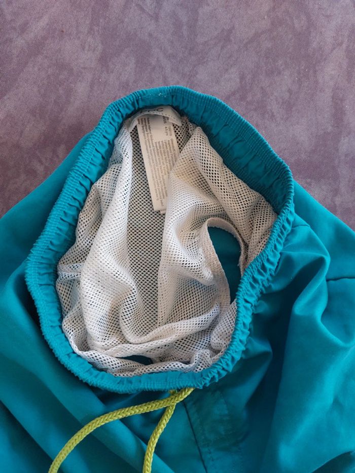 Short de bain marque Bonprix. Taille 4/5 ans 104/110 cm. Coloris turquoise. Lacets anis. Taille avec élastiques et cordon de serrage. Filet intérieur. En très bon état. Envoi rapide et soigné.
