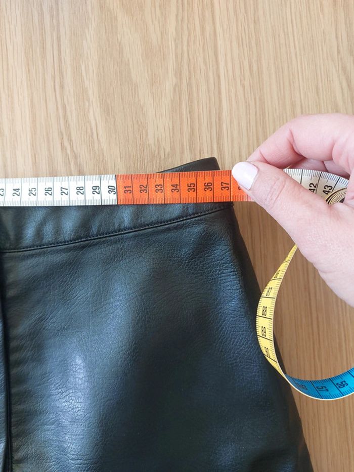 Mini jupe noire Taille 36 En simili cuir Hauteur 38cm Taille 36cm Bas de jupe 50cm