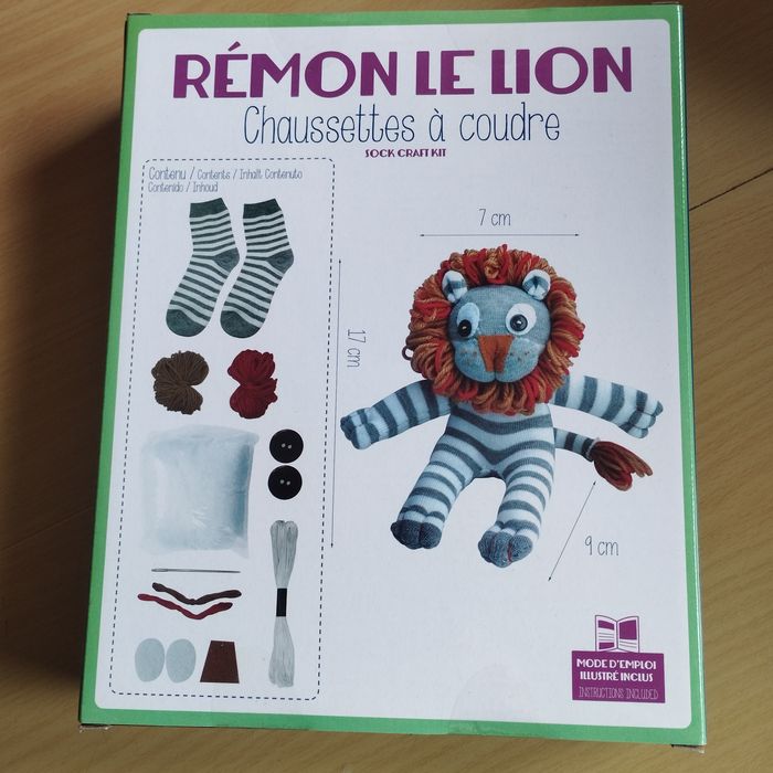 Coffret créatif couture peluche Rémon le Lion, chaussette à coudre de Graine Créative. 8+. Neuf dans sa boite d'origine jamais ouverte. Idée cadeau !