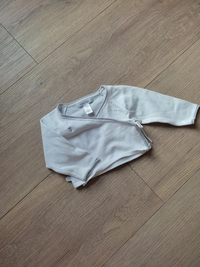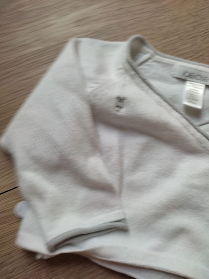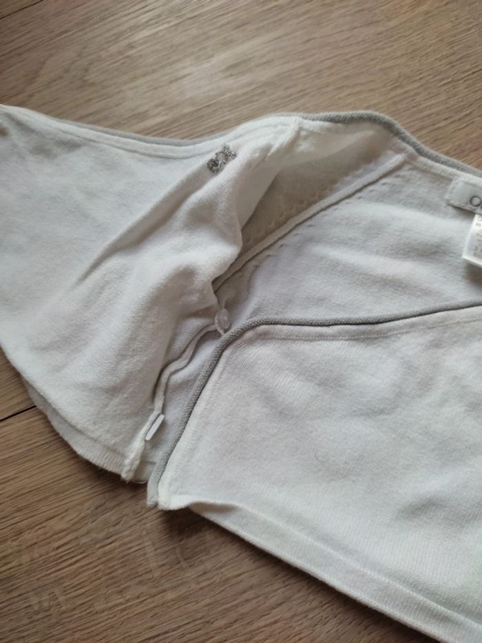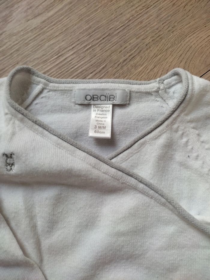 Brassière / gilet blanc avec liseré gris Taille 3 mois Marque Obaibi #sandra1108bébé_3mois #giletbébé #3mois #obaibi