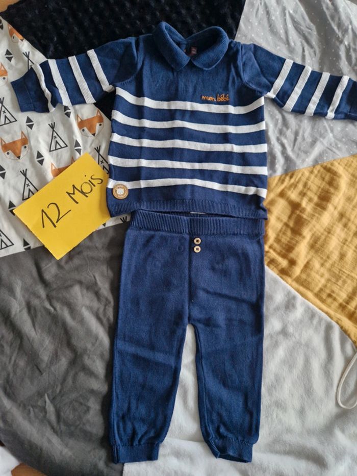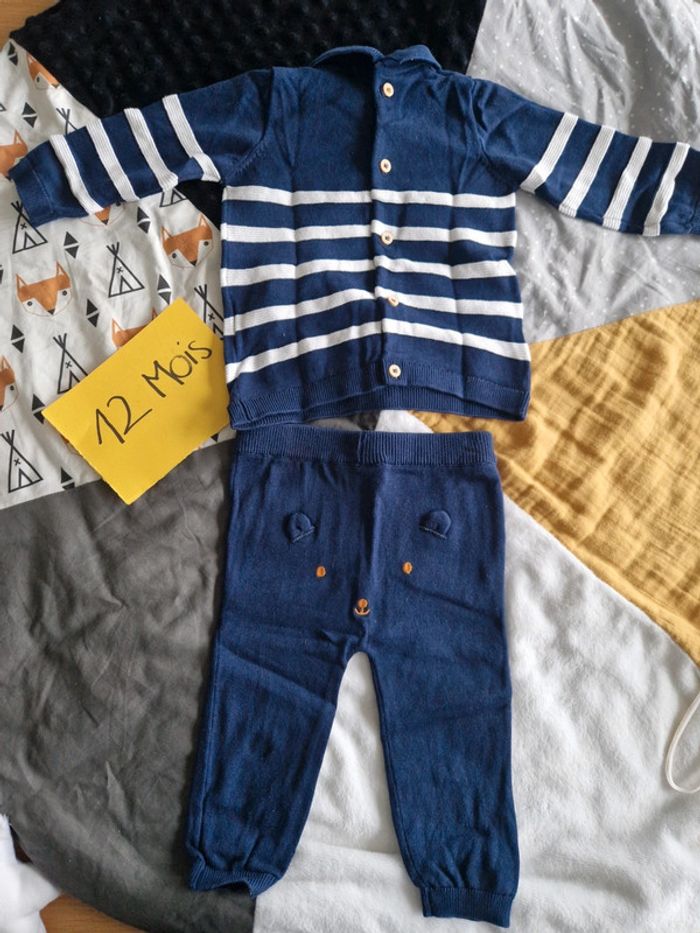 Ensemble Sergent Major pantalon et haut façon pull fin. Très mignon avec le petit ours derrière. Bébé sera très à l'aise. Très bon état. 🌸N'hésitez pas à faire des lots🌸 Retrouver tout le 12 mois garçon ici : #ju276_garçon12mois