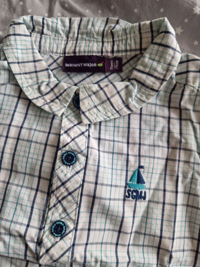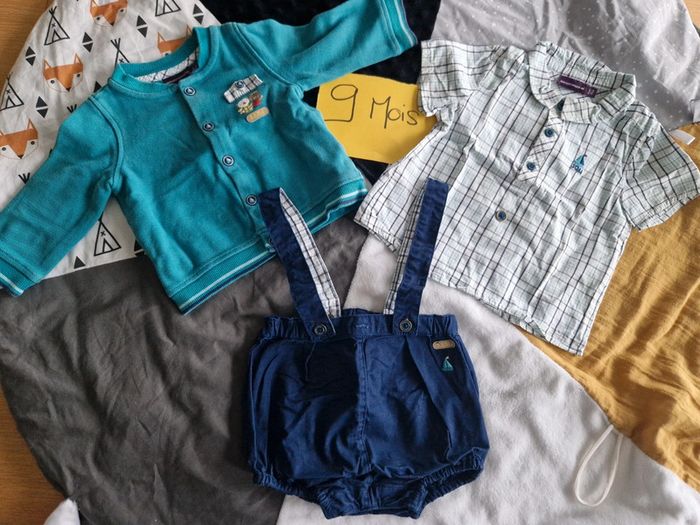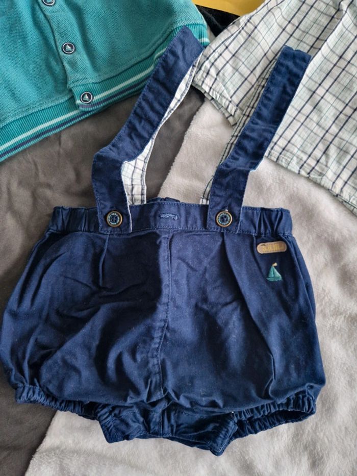 Ensemble Marque Sergent Major, idéal pour l'été ⛵️ Composé d'un bloomer qui s'ouvre entièrement entre les jambes grâce à des boutons pression, bretelles amovibles + chemise manches courtes + gilet. Très bon état. 🌸N'hésitez pas à faire des lots🌸 Retrouver tout le 9 mois garçon ici : #ju276_garçon9mois