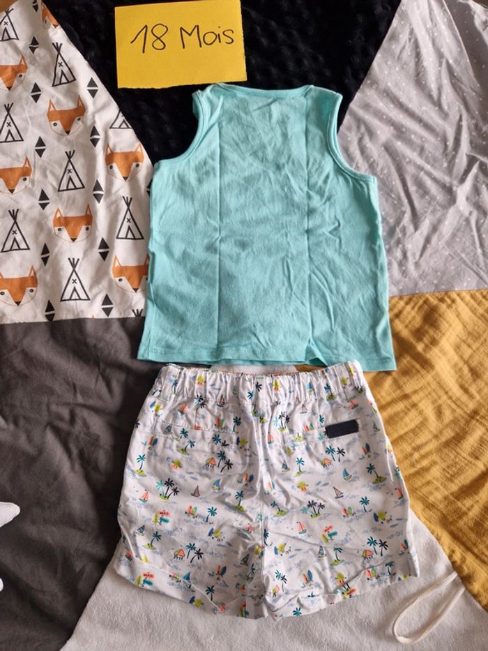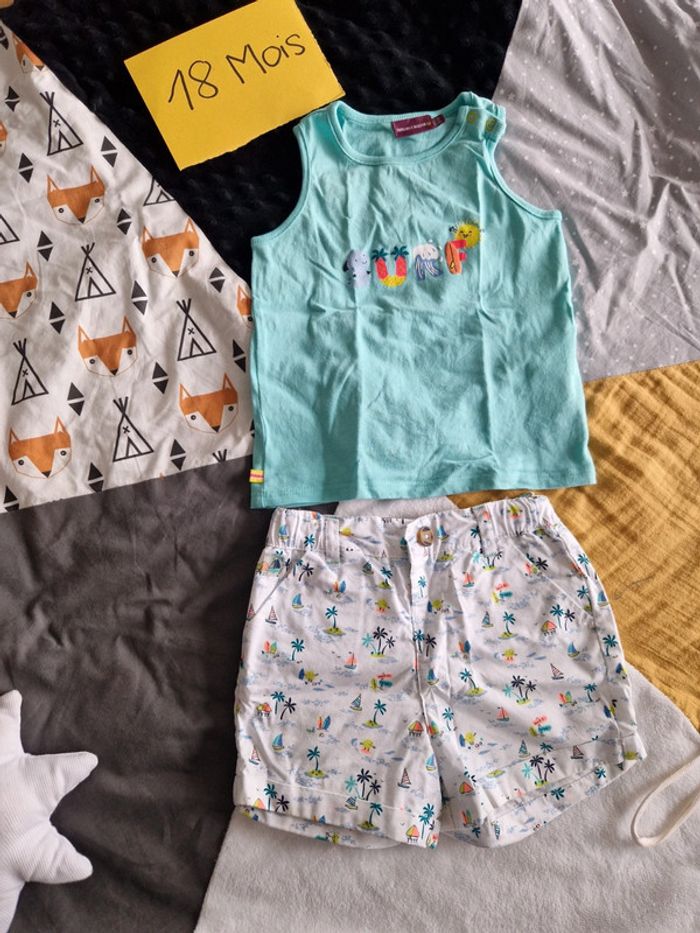 Ensemble Marque Sergent Major ⛵️🌴🏄‍♂️ Composé d'un short blanc à motifs et débardeur assorti. Comme neuf. Retrouvez tout le 18 mois ici : #ju276_garçon18mois