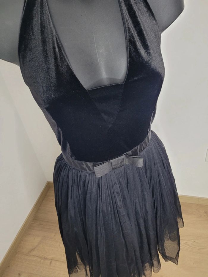 Robe de soirée naf naf Taille 38 S'attache dans le dos Haut en velours et jupe en tulle Fermeture éclaire 100% polyester, 100% nylon N'hésitez pas à créer votre lot, n'hésitez pas à cliquer sur les liens pour voir mes autres annonces : #beautifuldressingv38 Remise sur les lots activées !
