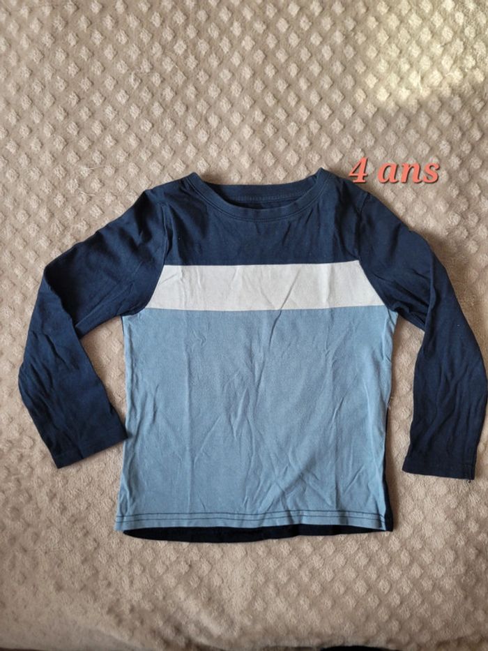 Tee-shirt manches longues Kiabi 4 ans 100 % coton N'hésitez pas à créer votre lot, n'hésitez pas à cliquer sur les liens pour voir mes autres annonces : #beautifuldressingv4ans #beautifuldressingvenfant Remise sur les lots activées !