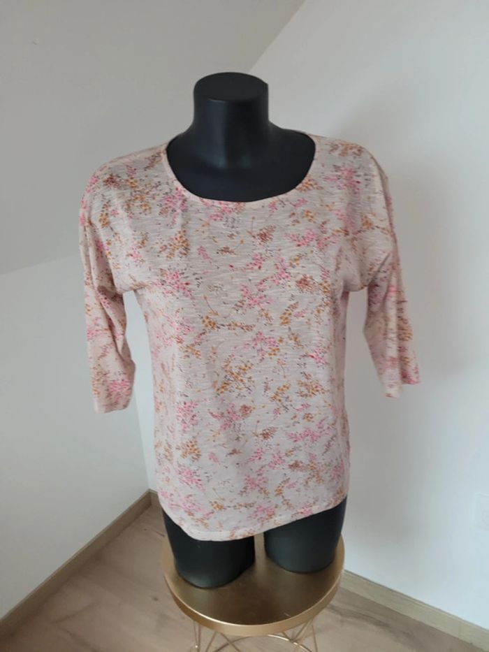 Tee-shirt Etam Taille M (38) Manches 3/4 Étiquette coupée mais correspond à une taille 40 N'hésitez pas à créer votre lot, n'hésitez pas à cliquer sur les liens pour voir mes autres annonces : #beautifuldressingv40 Remise sur les lots activées !