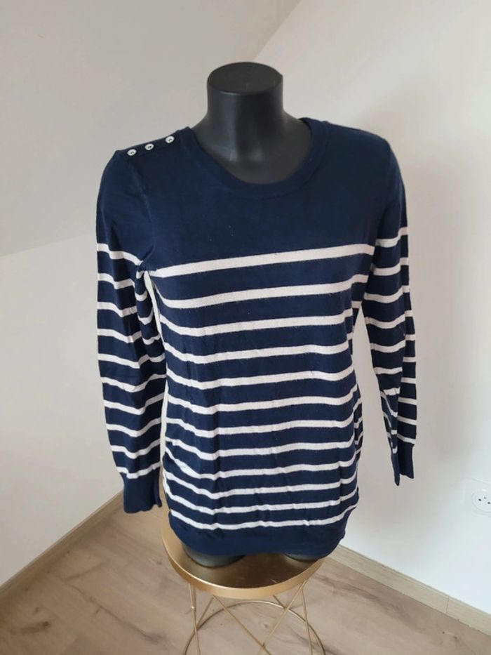 Pull à rayures bleu marine et blanc