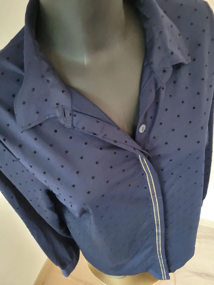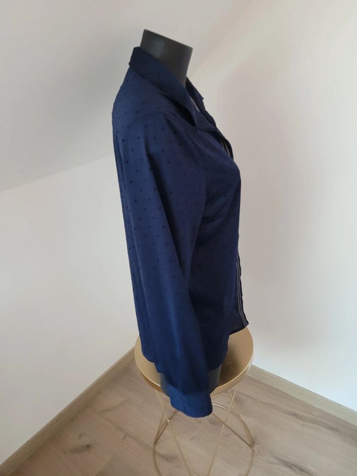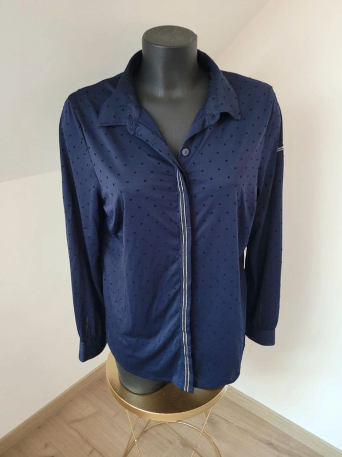 Chemisier terre de marins, taille 40, Bleu marine. Porté 2 fois, comme neuf Fermeture avec des boutons Très légèrement transparent Polyester, élasthanne N'hésitez pas à créer votre lot, n'hésitez pas à cliquer sur les liens pour voir mes autres annonces : #beautifuldressingv40 Remise sur les lots activées !