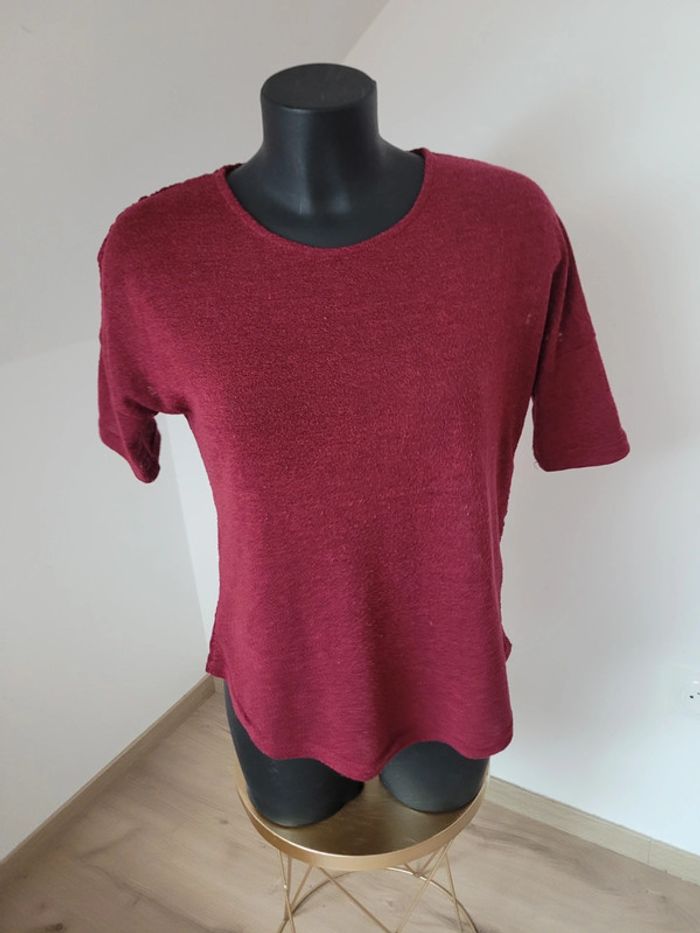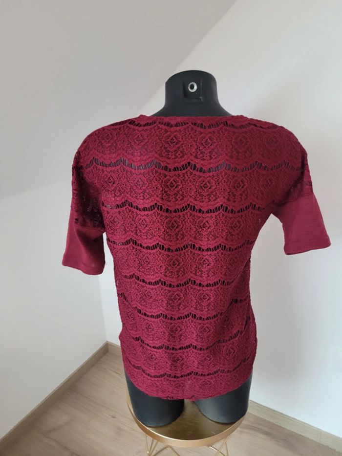 Pull fin bordeaux Manches courtes Dentelle ajouré dans le dos Mim Taille S (36) 100% polyester A été porté plusieurs fois, petites bouloches à l'avant (voir dernière photo) N'hésitez pas à créer votre lot, n'hésitez pas à cliquer sur les liens pour voir mes autres annonces : #beautifuldressingv36 Remise sur les lots activées !