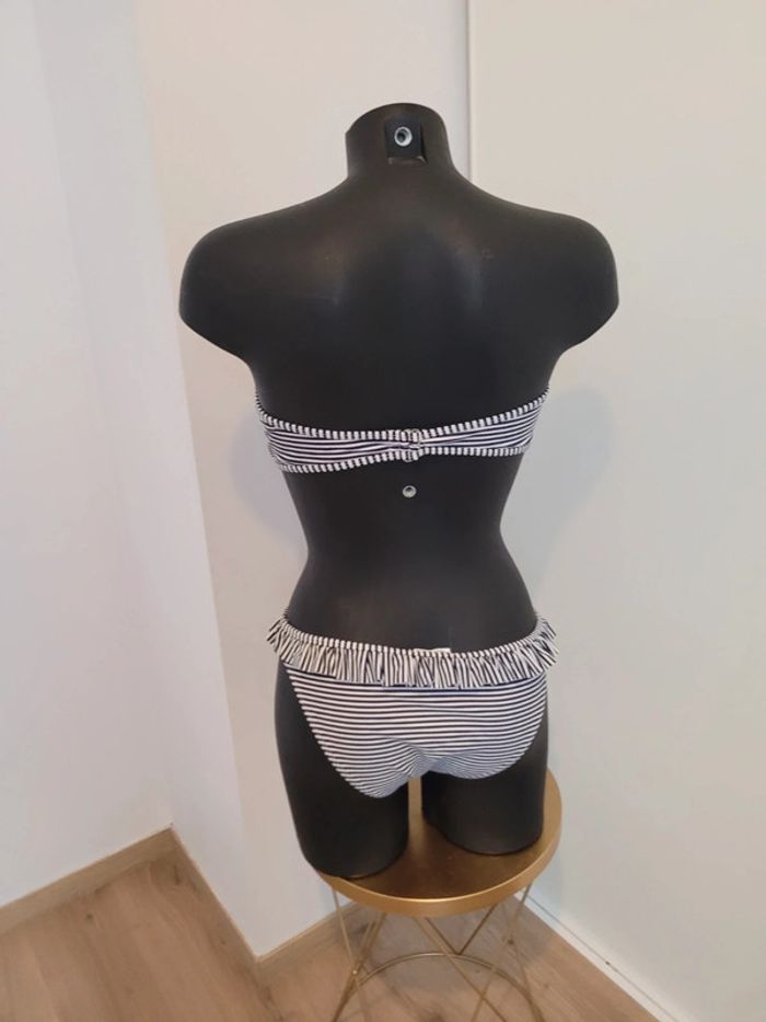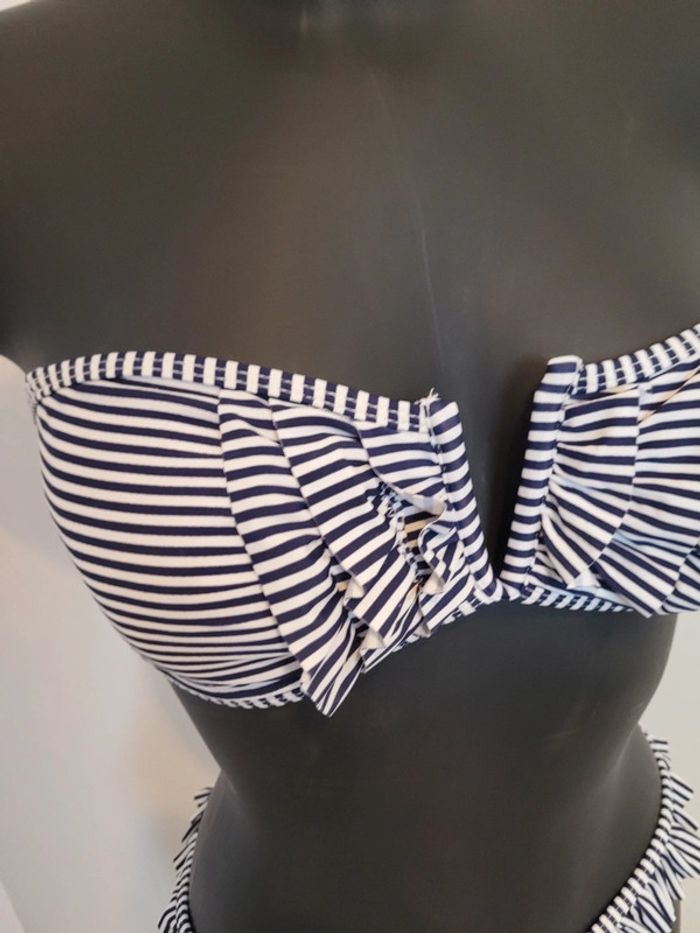 Maillot de bain Rayures bleu et blanc Cache cache Étiquette coupée mais correspond à une taille 38 N'hésitez pas à créer votre lot, n'hésitez pas à cliquer sur les liens pour voir mes autres annonces : #beautifuldressingv38 Remise sur les lots activées !