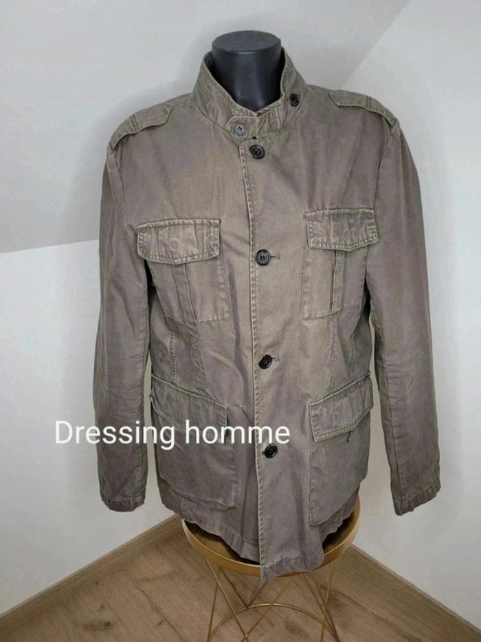 Veste homme Springfield Couleur kaki Il manque un bouton sur une grande poche à l'avant mais ce n'est pas gênant Et il y a un petit trou à côté de l'autre poche (voir dernière photo) N'hésitez pas à créer votre lot, n'hésitez pas à cliquer sur les liens pour voir mes autres annonces : #beautifuldressingvhomme Remise sur les lots activées !