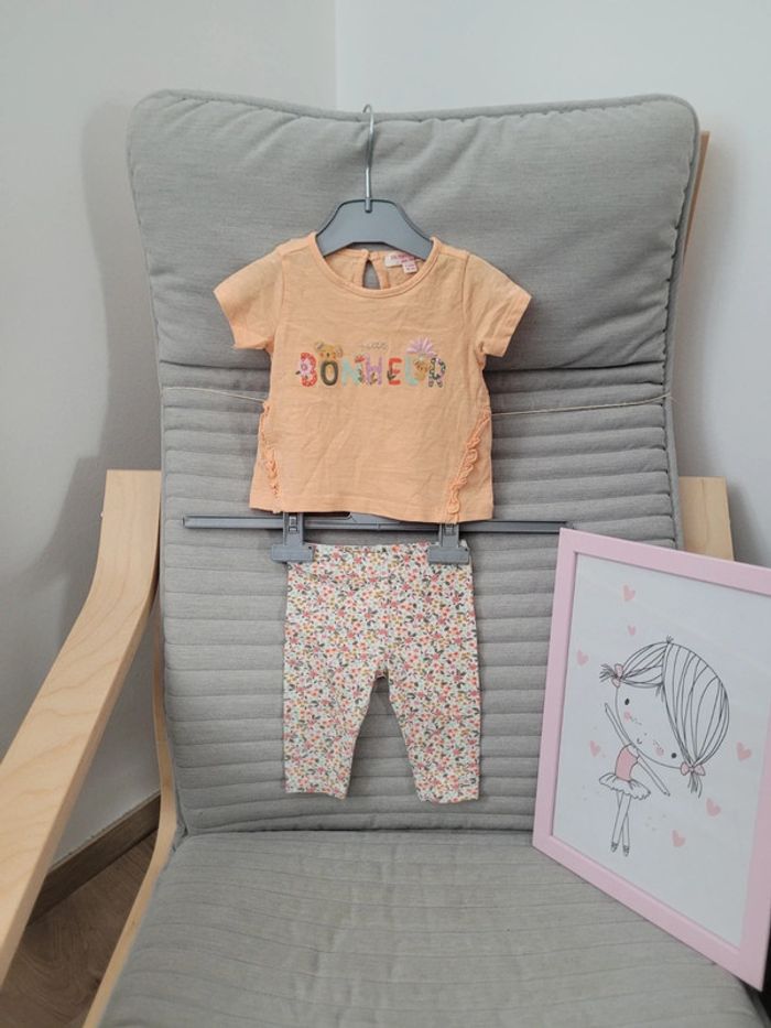 Ensemble été 3 mois Du pareil au même Tee shirt manches courtes abricot "bonheur" koala Pantalon legging motifs fleurs Très peu porté N'hésitez pas à créer votre lot, n'hésitez pas à cliquer sur les liens pour voir mes autres annonces : #beautifuldressingv3moisf #beautifuldressingvenfant Remise sur les lots activées !