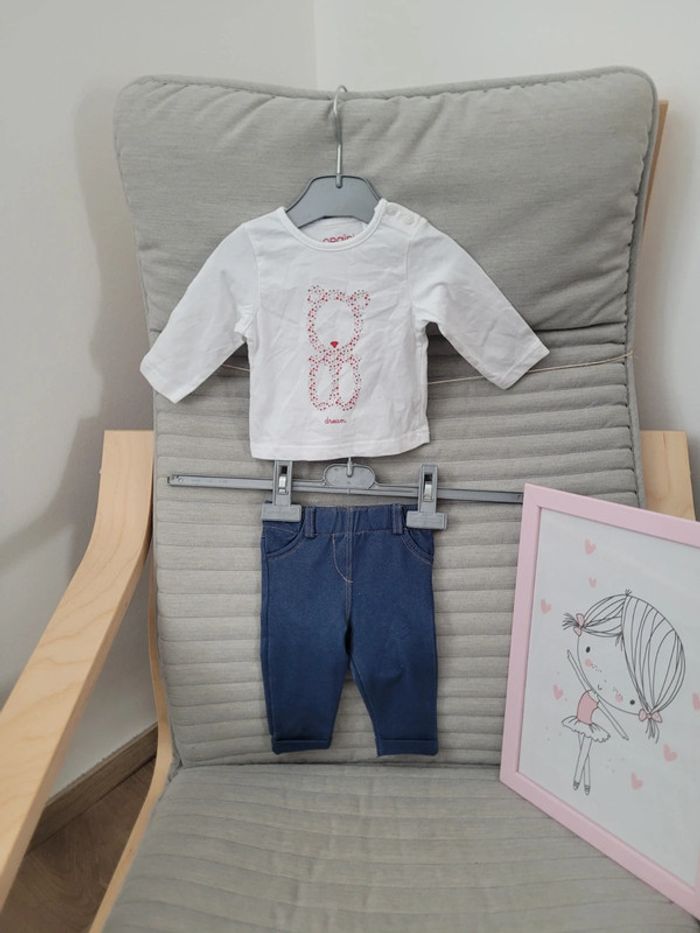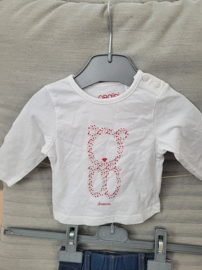 Ensemble 3 mois - tee shirt Obaibi blanc - pantalon effet jean Neuf N'hésitez pas à créer votre lot, n'hésitez pas à cliquer sur les liens pour voir mes autres annonces : #beautifuldressingv3moisf #beautifuldressingvenfant Remise sur les lots activées !