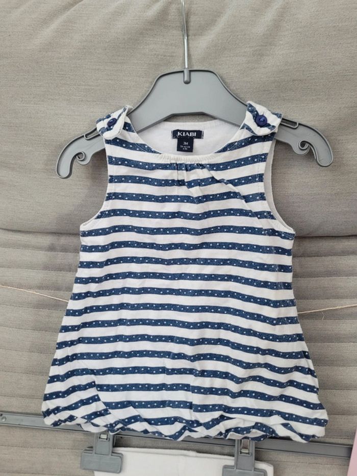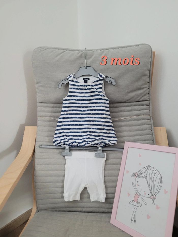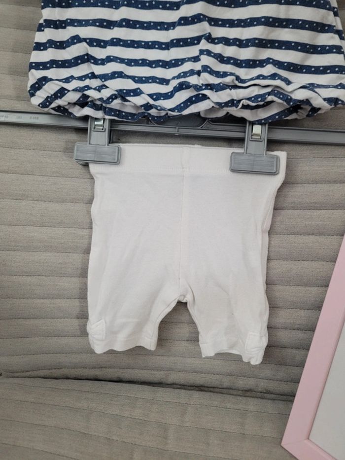 Ensemble 3 mois Kiabi Robe à rayures et petit legging court blanc N'hésitez pas à créer votre lot, n'hésitez pas à cliquer sur les liens pour voir mes autres annonces : #beautifuldressingv3moisf #beautifuldressingvenfant Remise sur les lots activées !