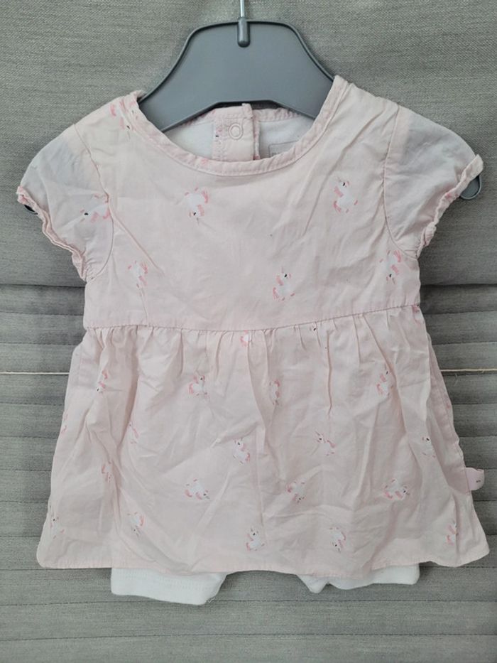 Robe été 1 mois P'tit bisou Motifs licorne Avec combinaison / short intégré N'hésitez pas à créer votre lot, n'hésitez pas à cliquer sur les liens pour voir mes autres annonces : #beautifuldressingv1moisf #beautifuldressingvenfant Remise sur les lots activées !