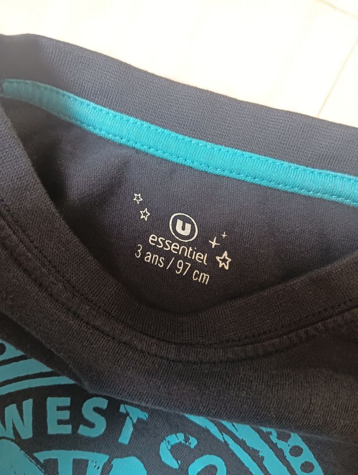 🌀 T-shirt garçon manches courtes. En parfait état. 🔸Taille 3 ans 🔸Marque U essentiel 🔸100% coton 🔸Col rond - couleur bleu marine