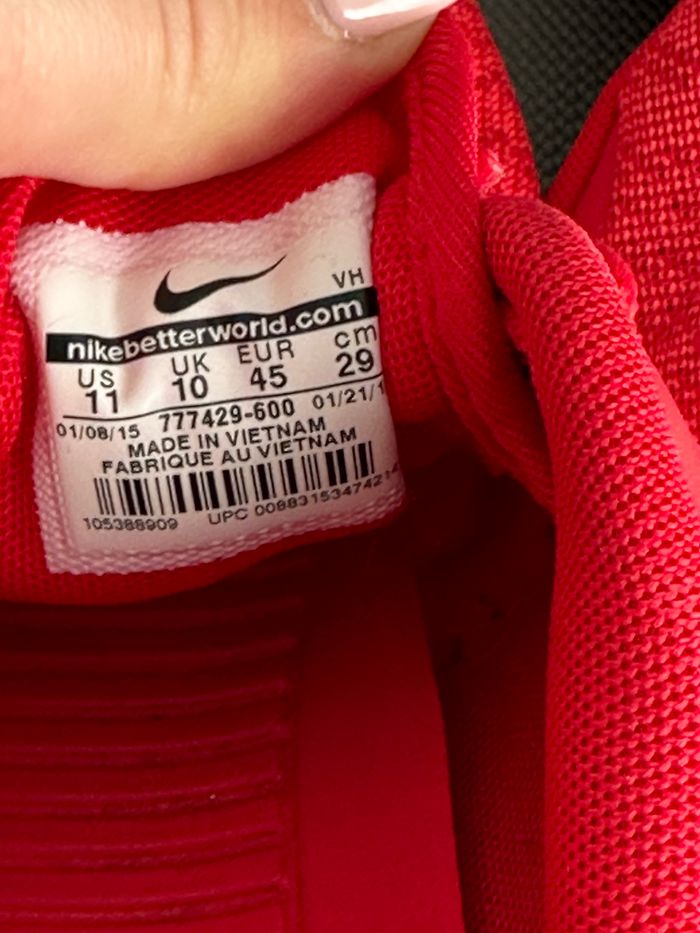 Lot de deux paires de baskets Nike taille 45 Très bon état pour les deux Sur les rouges toutes petites taches claires cf photo Et que les noires petites traces sur l’avant de la basket cf photo d’où le prix très bas