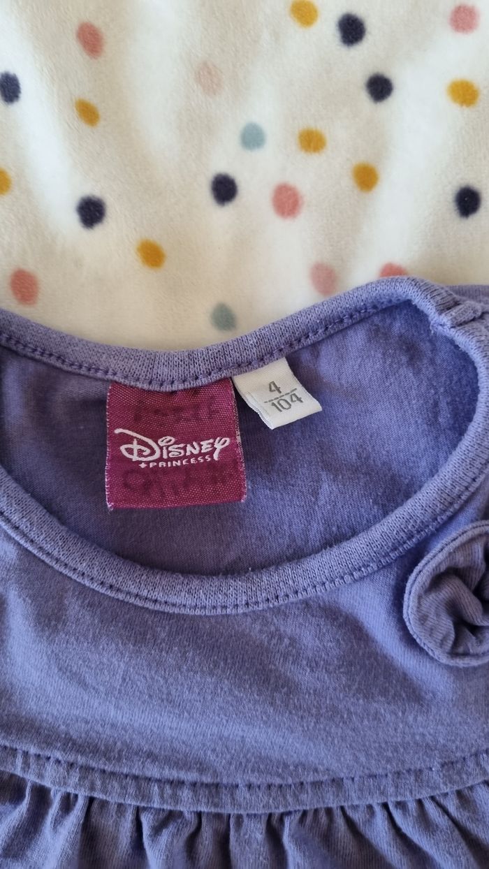 Joli Tee-shirt Jasmine en taille 4 ans, de couleurs violet et Lila porté quelques fois Petites tâches sur une manche et dedans 100% coton