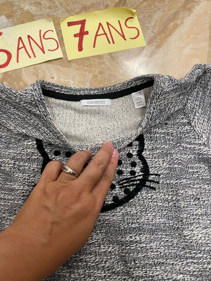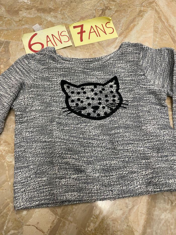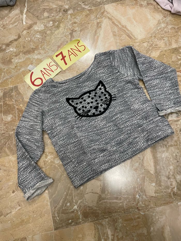 Pull okaidi 8 ans Mais taille court donc correspond plus à 7 ans Très bon état Tête de chat #virginielp1703fille6ans #virginielp1703fille7ans #virginielp1703fille8ans