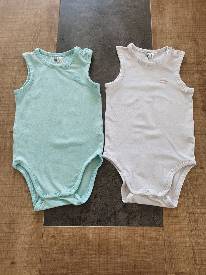 Lot comprenant deux bodies débardeur, ouverture au niveau des jambes avec pressions et au niveau d'une épaule avec pressions également, de marque Orchestra, taille 23 mois.
