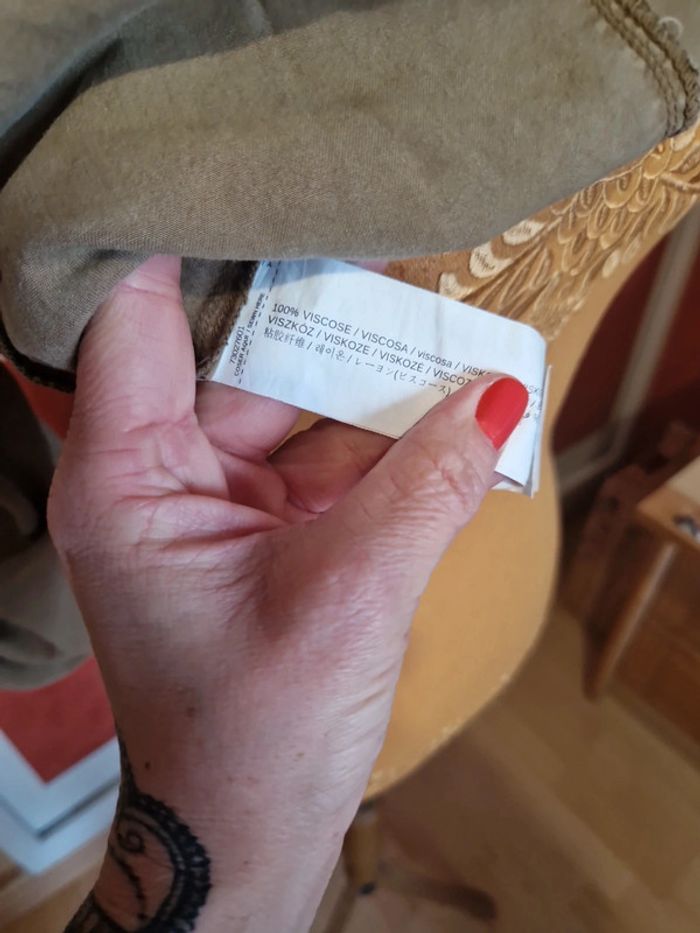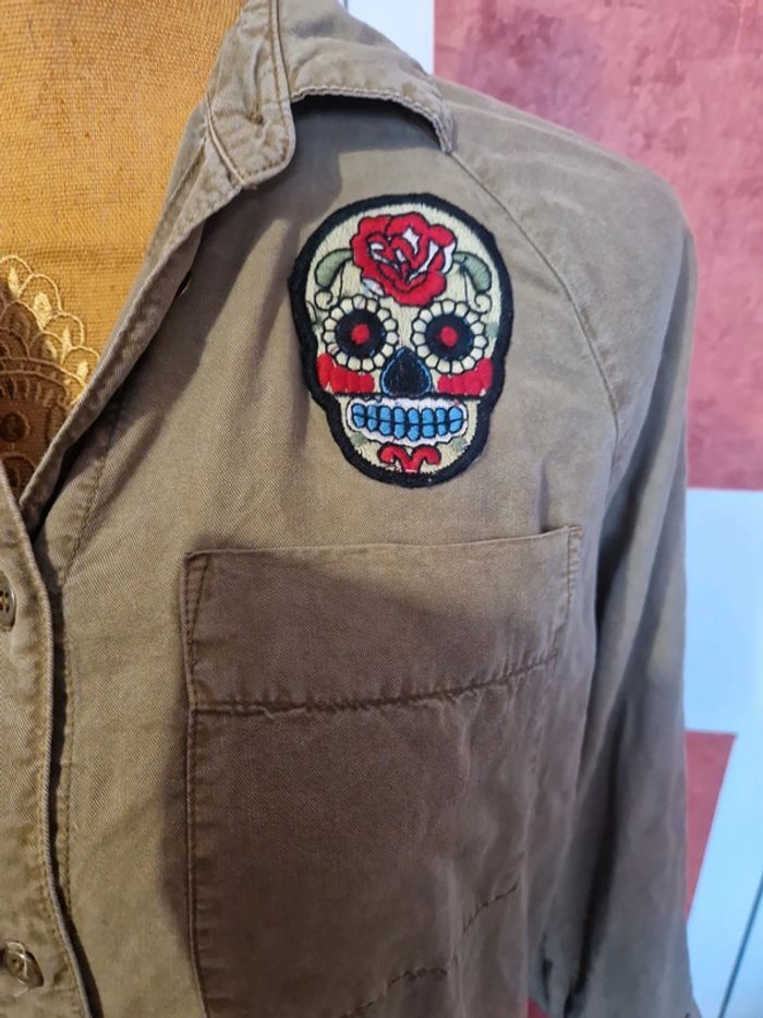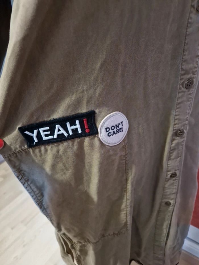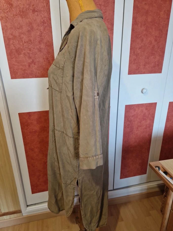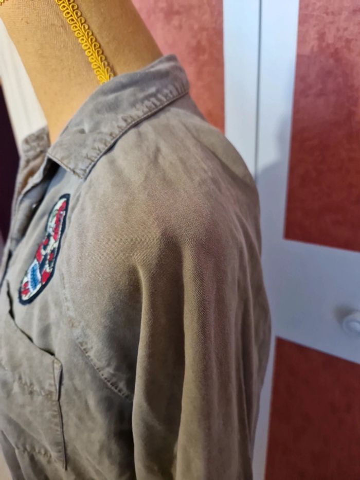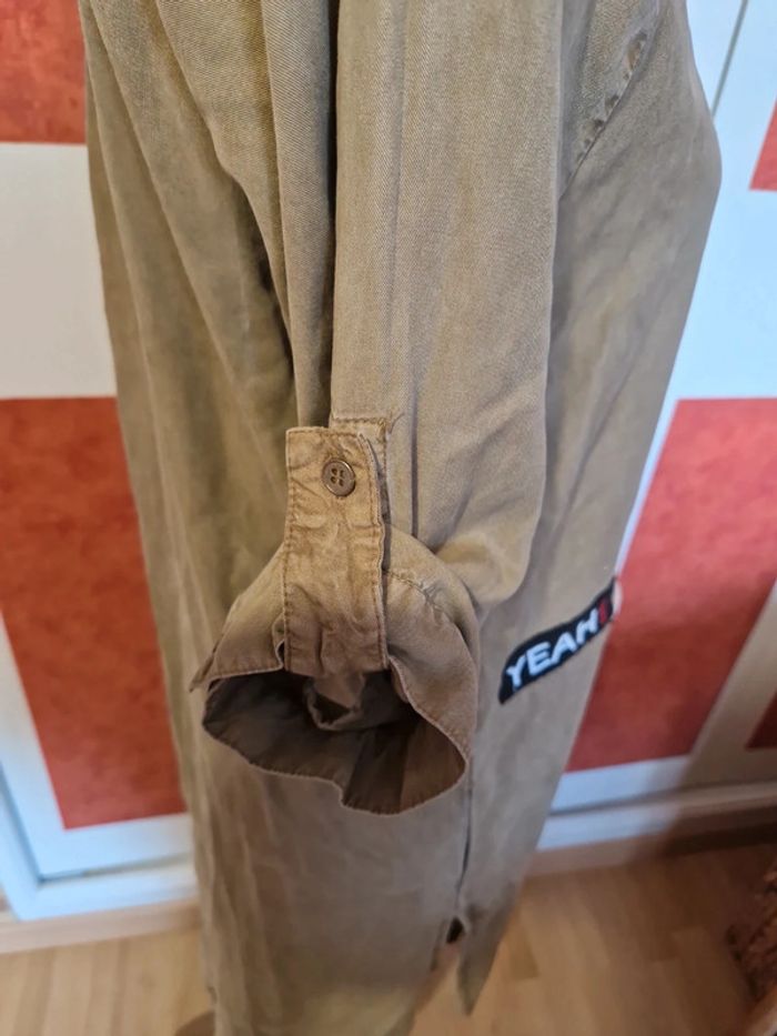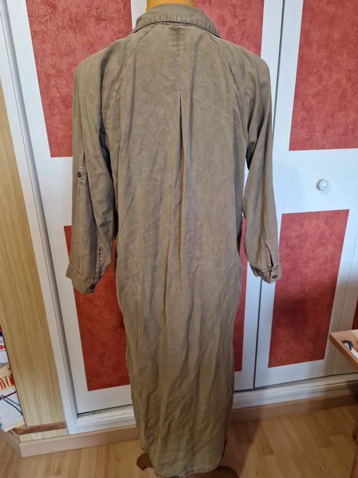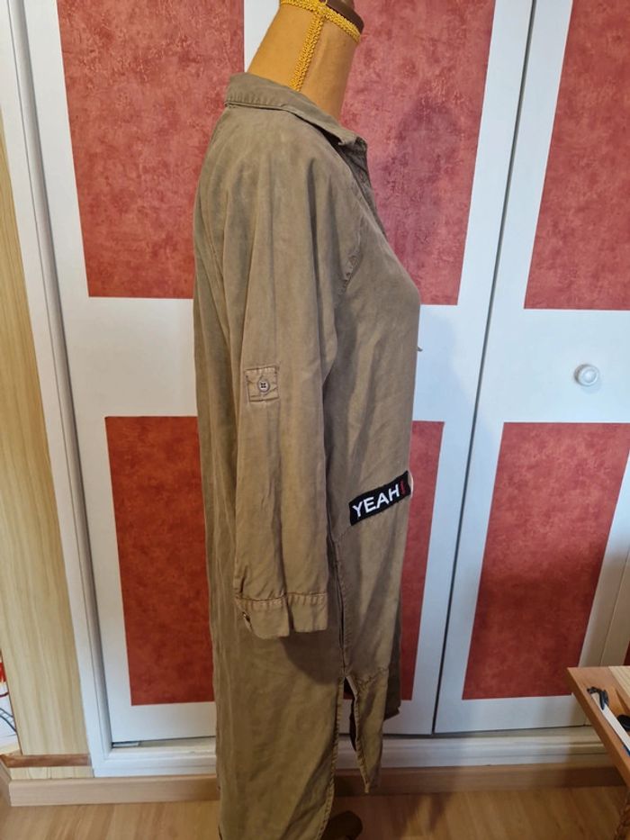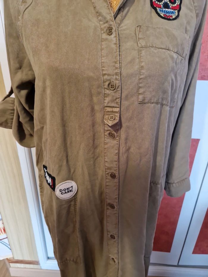 PAS D EXPÉDITION VIA VINTEDGO Robe longue avec patchs en très bon état. Couleur kaki. Poches chaque côté. Manches 3/4 mais transformable courte.