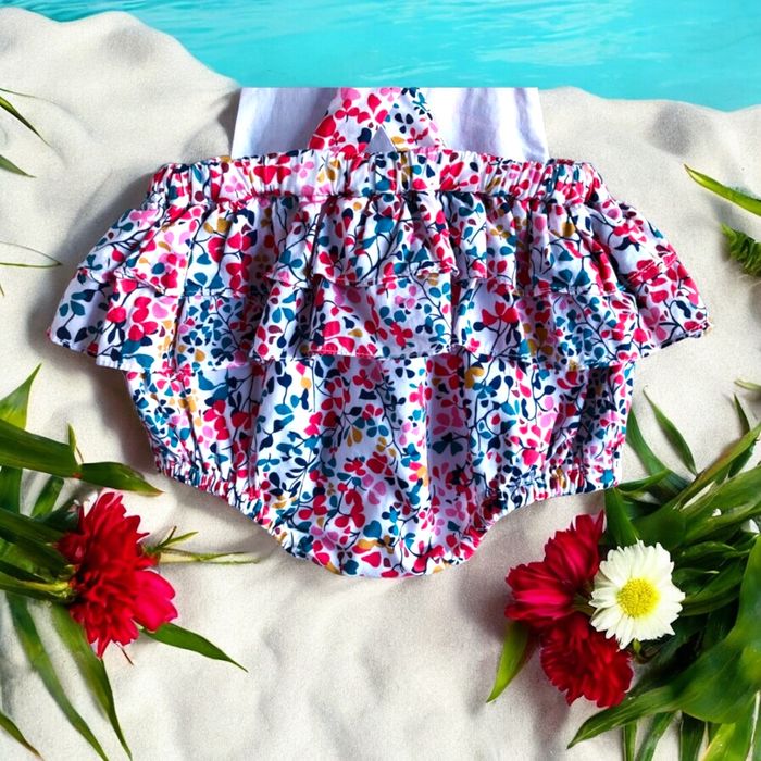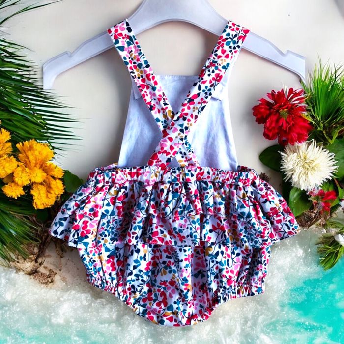MARQUE : JACADI... ÉTAT : COMME NEUF !!! TAILLE : 1 MOIS OU STATURE 54 CM COLORIS : BLANC + ROUGE + ROSE + DIVERS COMPOSITION : 100% COTON MOTIF : IMPRIMÉ LIBERTY NINA TAYLOR PARTICULARITÉS : - Volant au Dos au niveau de la Taille & sur les Côtés - Salopette & Chapeau Doublés - Contraste de Teintes Lumineuses