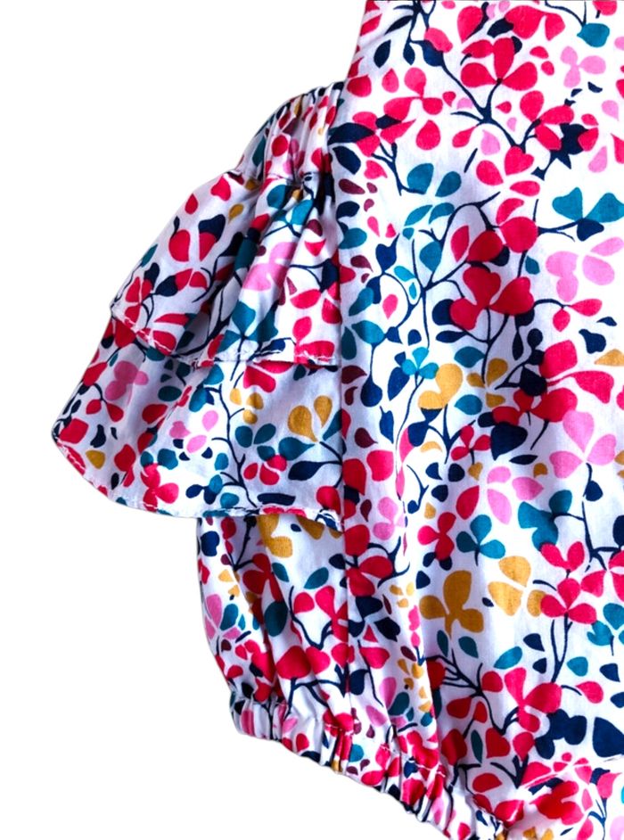 JACADI - ENSEMBLE 2P BÉBÉ FILLE IMPRIMÉ LIBERTY NINA TAYLOR & DÉTAIL VOLANTS 1M