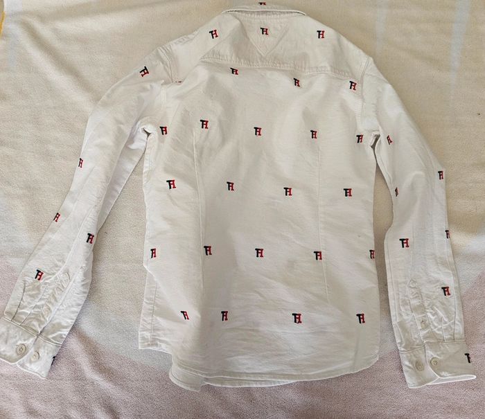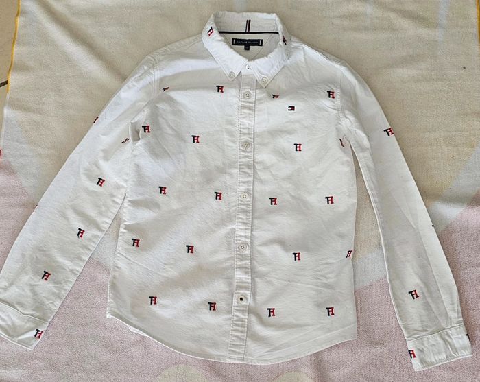 jolie chemise 📌Marque :tommy hilfiger 📌Taille :10 ans 📌Motif : graphisme et logos/ uni 📌Coloris :blanc marine rouge Pour voir tout mon 10 ans tapez dans la barre de recherche #10ansgarçonlili29217