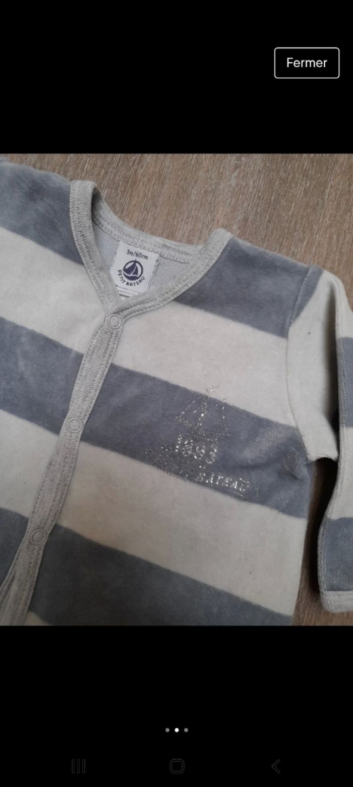 #jessl8262garcon3mois Pyjama velours taille 3 mois petit bateau Tache voir photo