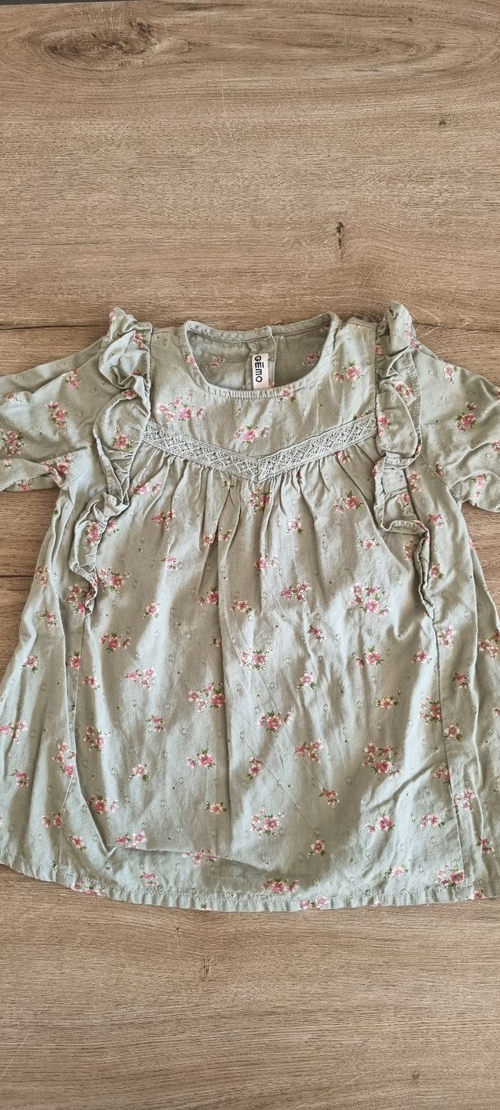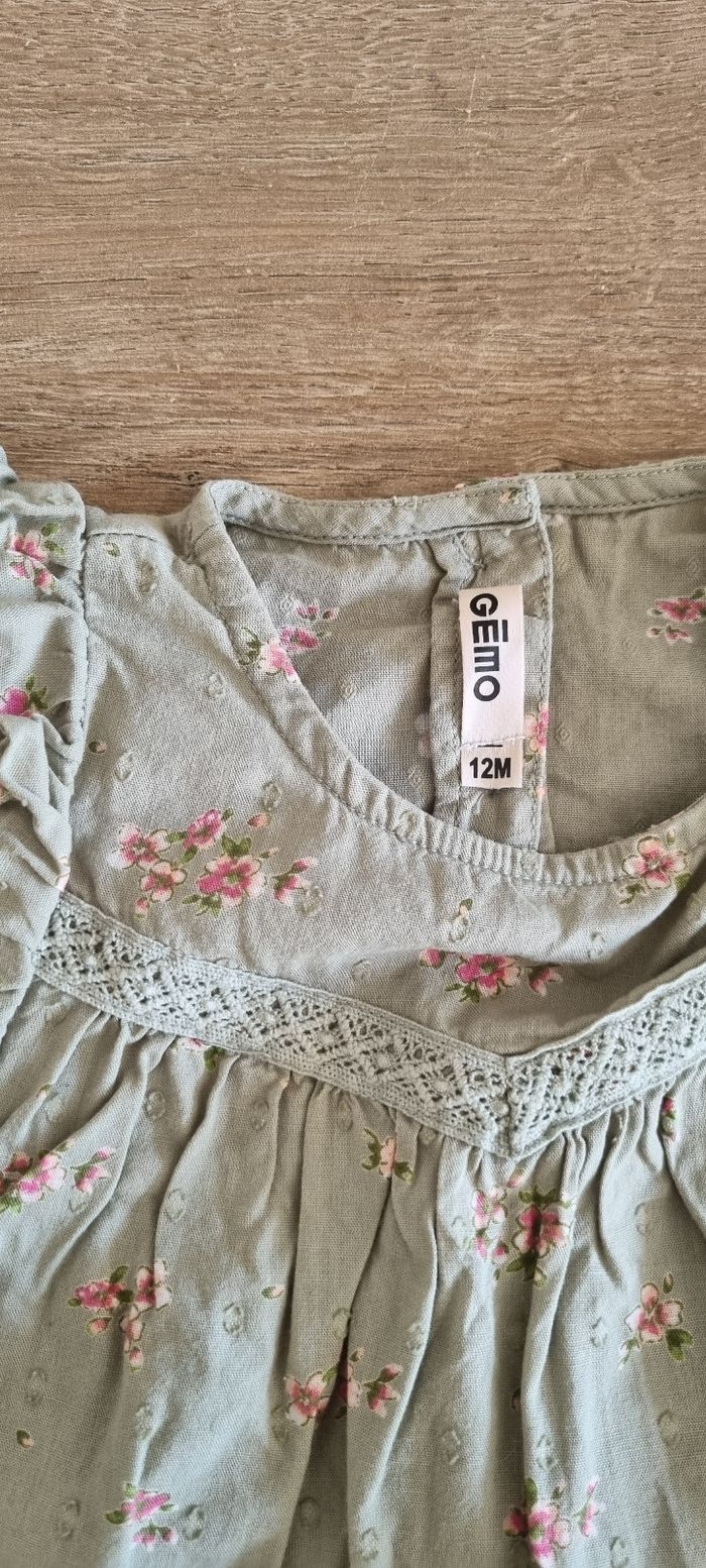 Robe à manches longues couleur kaki à motifs fleuris Gémo taille 12 mois Très bon état