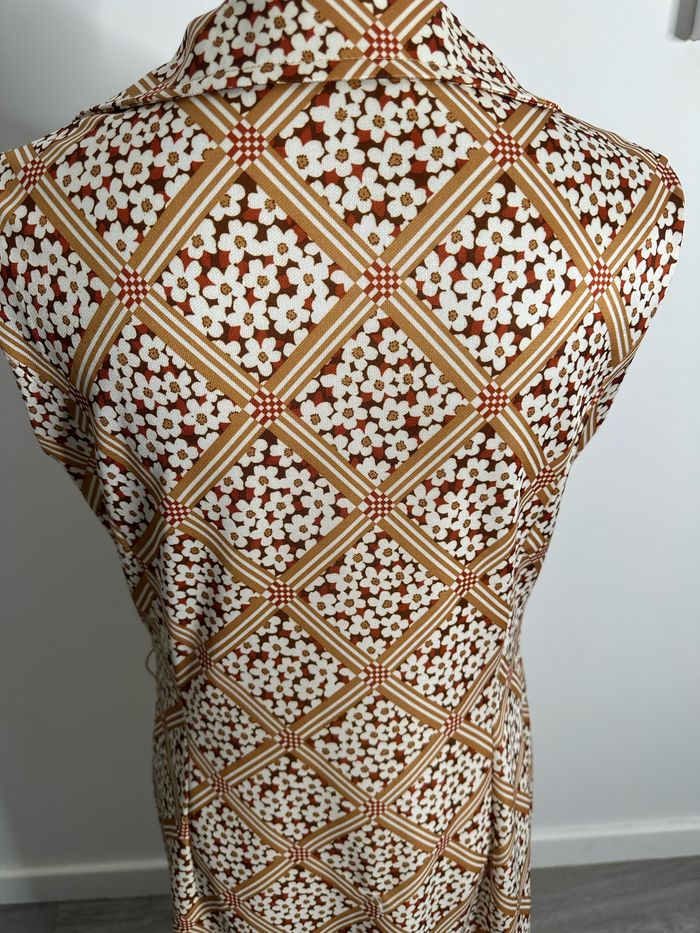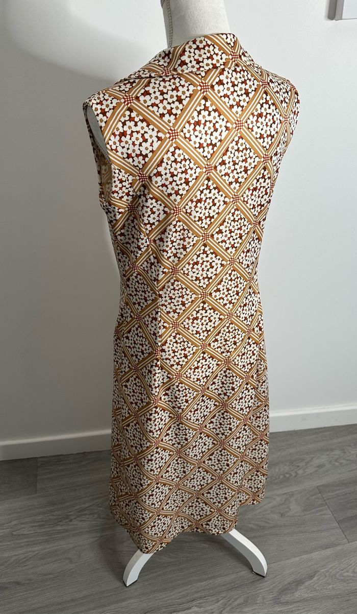 Robe bariolée à fleurs beige et marron seventies Vintage T38 M - photo numéro 7