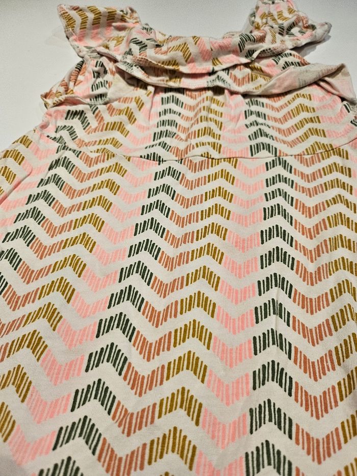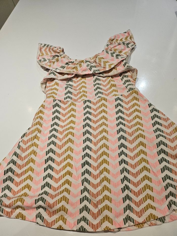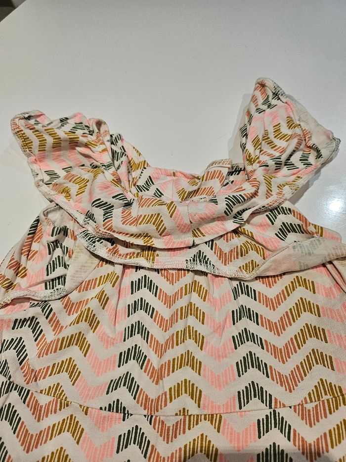 Robe courte manches courtes. Volant eur le haut. Blanc, rose, vert, moutarde. Marque : Kiabi Taille : 5 ans