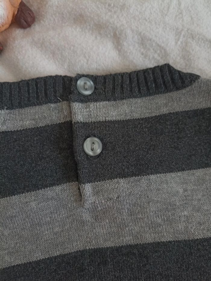 Pull rayé chic, gris, en excellent état, très peu porté. Coll v. Boutons derrière pour faciliter l'habillage