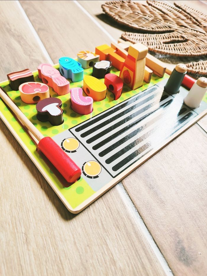 🦐Jeu d'imitation - Dinette en bois 2 en 1 puzzle plateau barbecue JB1368