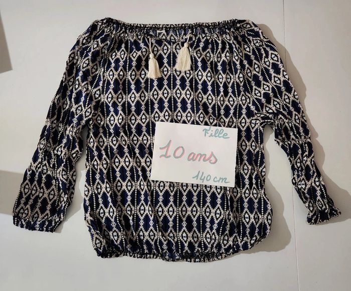 Chemise / blouse manche 3/4 bleu marine et beige 10ans Neuve jamais porté
