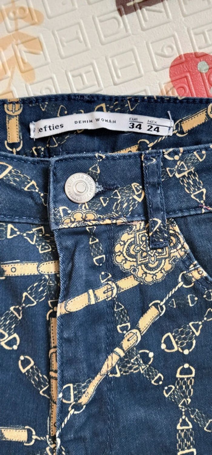 Jeans lefties Bleu avec dessin chaînes ⛓️ Taille 34 taille haute Neuf jamais porté