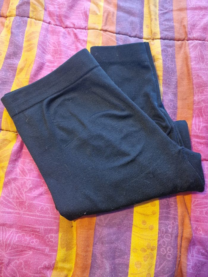 Son apparence ne le met pas en avant ! Il est in leggins dapparence normale classique noir, mais son atout, qui n'est pas des moindres est qu'il va remodeler, galber votre fessier, et ça personne ne le verra sauf sur votre silhouette 👌😉 Mesure taille 33cms à plat et extensible jusque 50cms Longueur 78cms et entrajambe 69cms (se comporte un peu comme un collant en s'étirant une fois porté) Un petit trou à la couture arrière mais qui ne flèche pas sur le bas (voir photo détail)