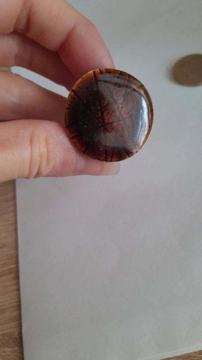 Tbe marron brillant avec paillettes et motifs. Réglable, en fantaisie, vintage authentique #ontherabijou #baguevintage #baguevintagereglable
