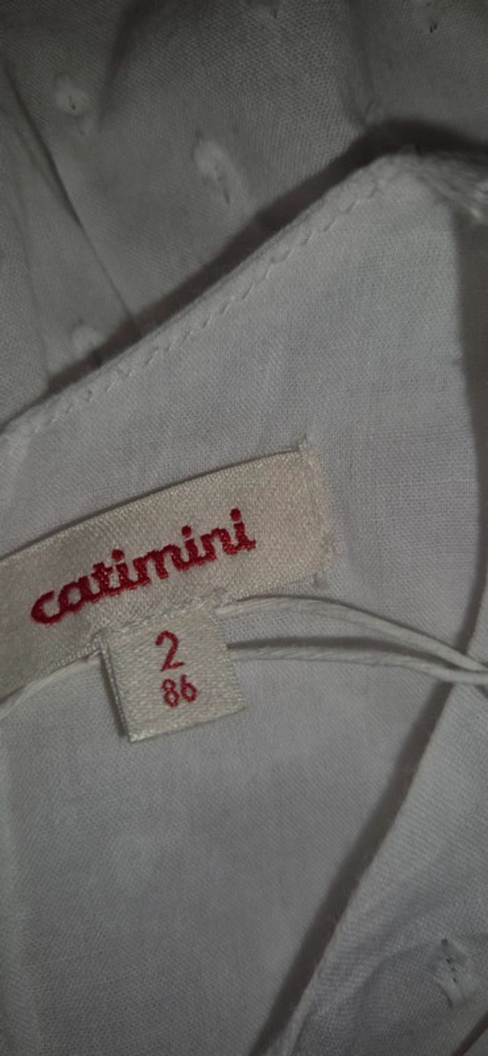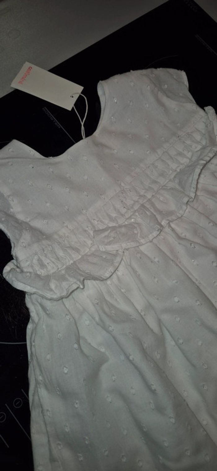 Vends robe blanche manches courtes doublée catimini Avec liseré argenté