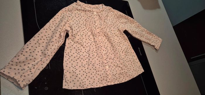 Vends chemise à manches longues zara Rose avec petits cœurs gris Neuve