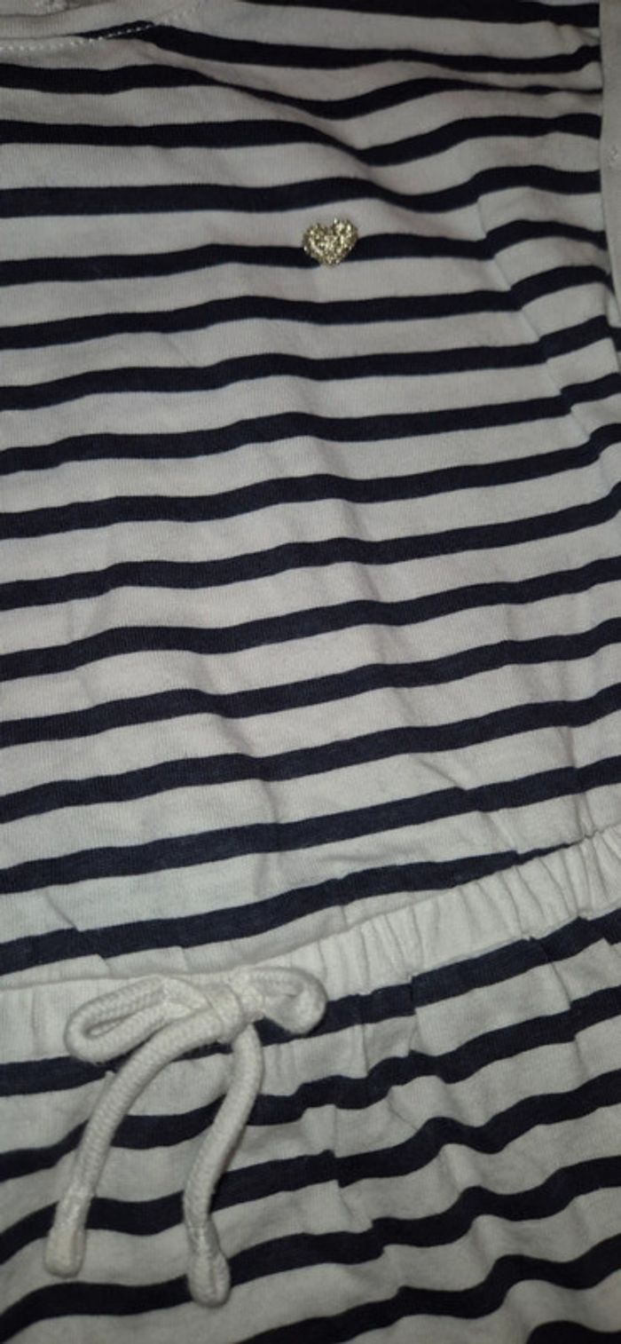 Vends robe à rayures blanches et marines Petit cœur doré brodé Neuve